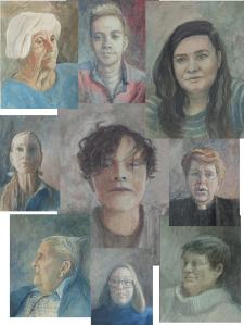 Later note – April 2020 – Coronavirus has now hit us. Who could have thought it. This will make the content of this project even more urgent and important. During this period of lockdown, portraits are being drawn via Zoom, and so the final paintings are grittier, and that is appropriate.